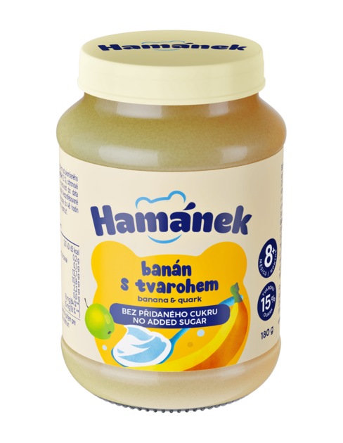 Jemné pyré z jablek, banánu a tvarohu přináší přirozeně sladkou chuť a jemnou krémovost díky tvarohu.