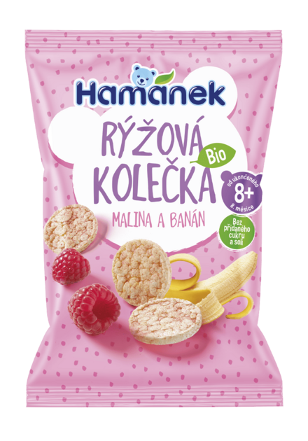 Složení: rýže * 81%, slunečnicový olej * 9%, banánový prášek 6%, malinový prášek